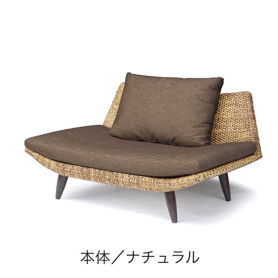 オリジナリティ溢れる形状と大きめのふかふかのクッションです。広めのワイドですので、詰めて座れば2名様でもお座りいただけます。アームレストがなく少し脚を曲げたら横になることも出来ます。