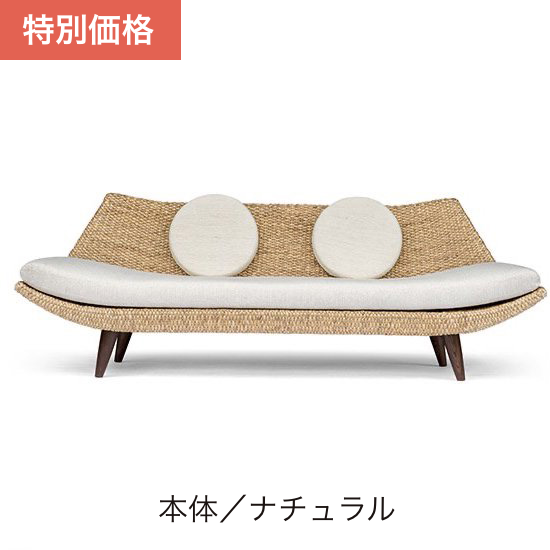 オリジナリティ溢れる形状と丸いクッションのコンビネーションが印象的な2004年グッドデザイン賞を受賞モデルです。このソファひとつでお部屋のインテリア全体の雰囲気ががらりと変わる、インパクトの強いデザインが特徴です。アームレストがなく座面を幅いっぱいまで伸ばしたデザインになりますので男性でも充分に足を伸ばして横になれるのもポイントです。