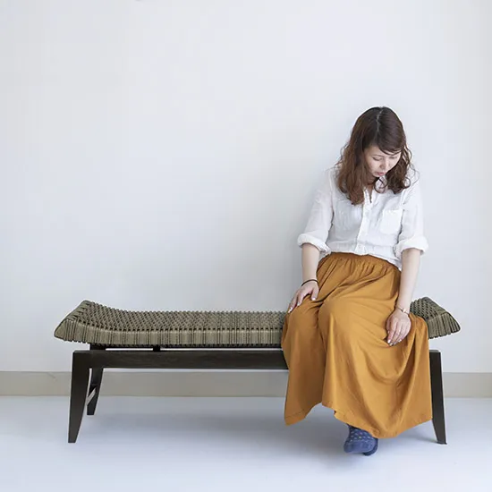 ウォーターヒヤシンスを使用したアジアンテイストなベンチです。